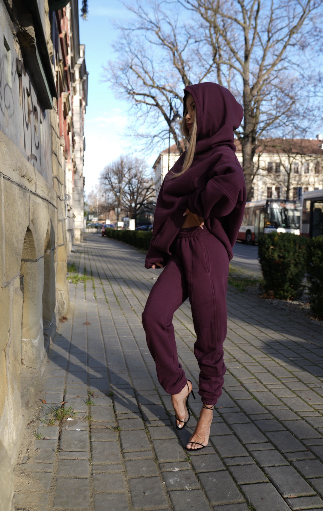 Bluza w kolorze głębokiego burgundu, wykonana z miękkiej, wysokogatunkowej dzianiny dresowej premium. Materiał jest niezwykle przyjemny dla skóry, otulający i komfortowy na cały dzień.