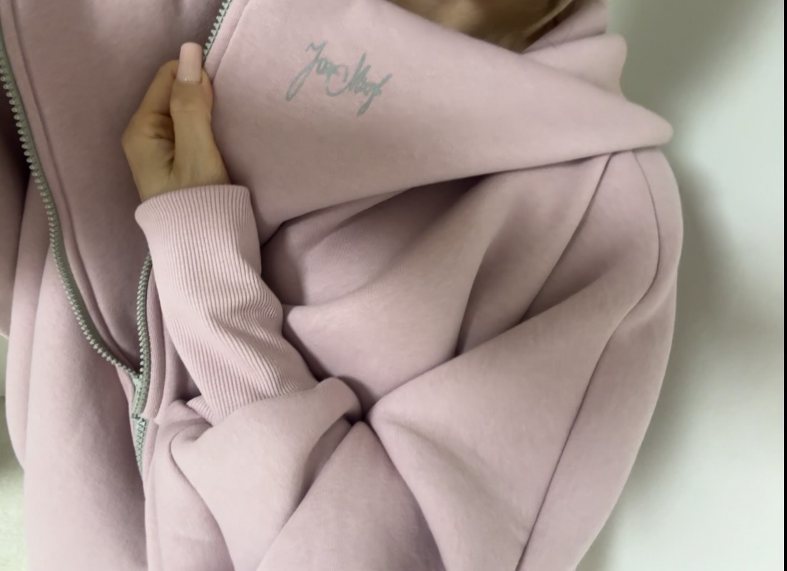 Minimalistyczna bluza na zamek z kominem DESERT TONE POWDER PINK