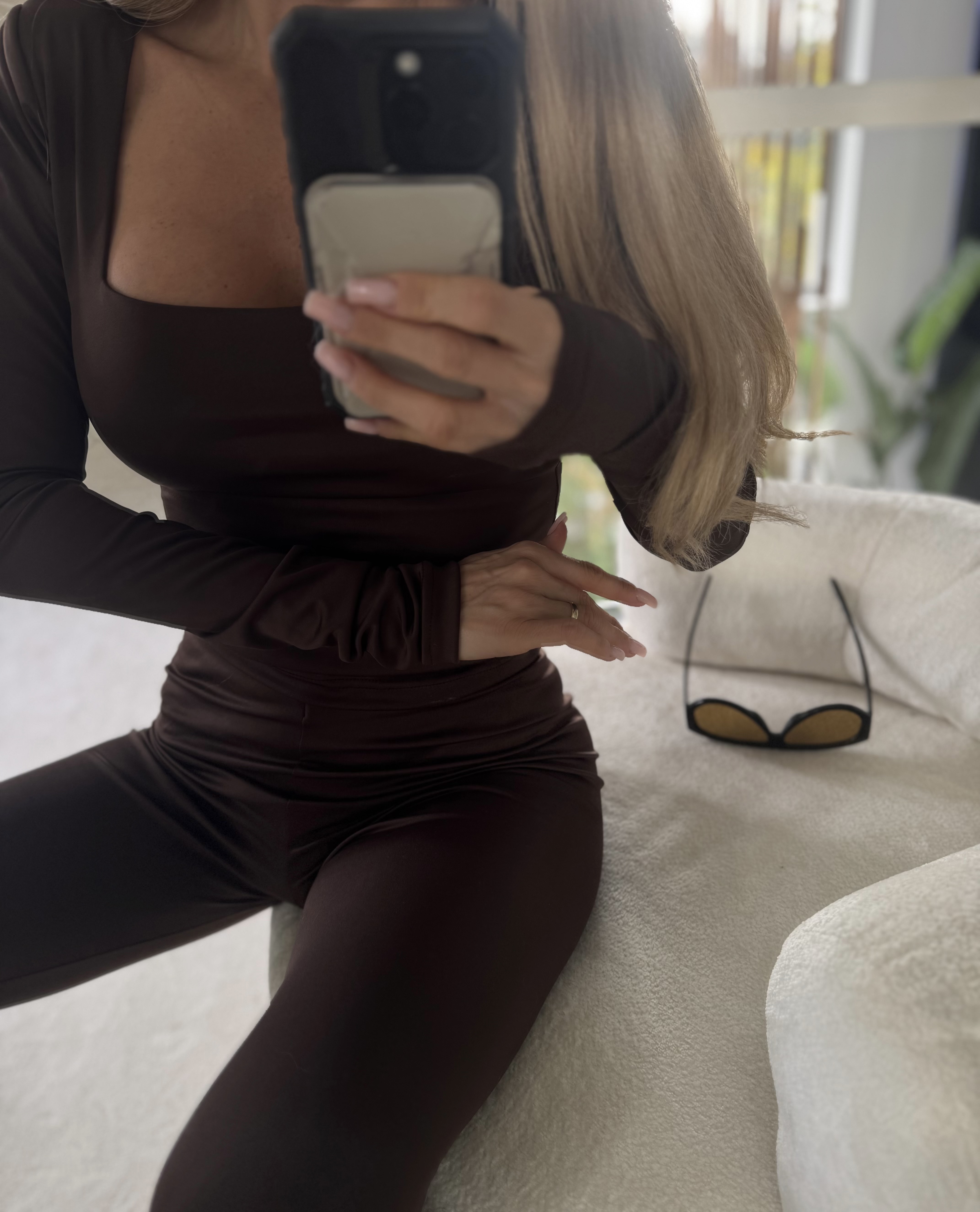 Ten kolor – głęboki, ciepły odcień czekolady – cudownie komponuje się zarówno z klasycznymi jeansami, jak i ze spodniami lub legginsami z kolekcji Second Skin.