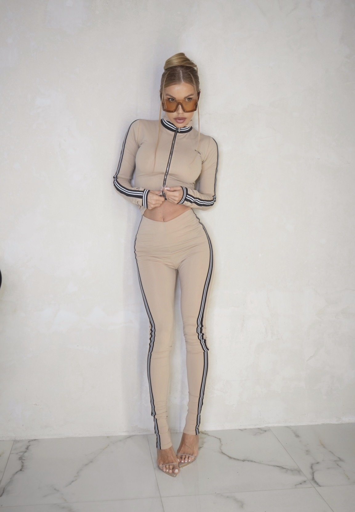 Legginsy możesz łączyć z bluzą na zamek Push Up Beige, tworząc spójny, sportowo-kobiecy komplet.