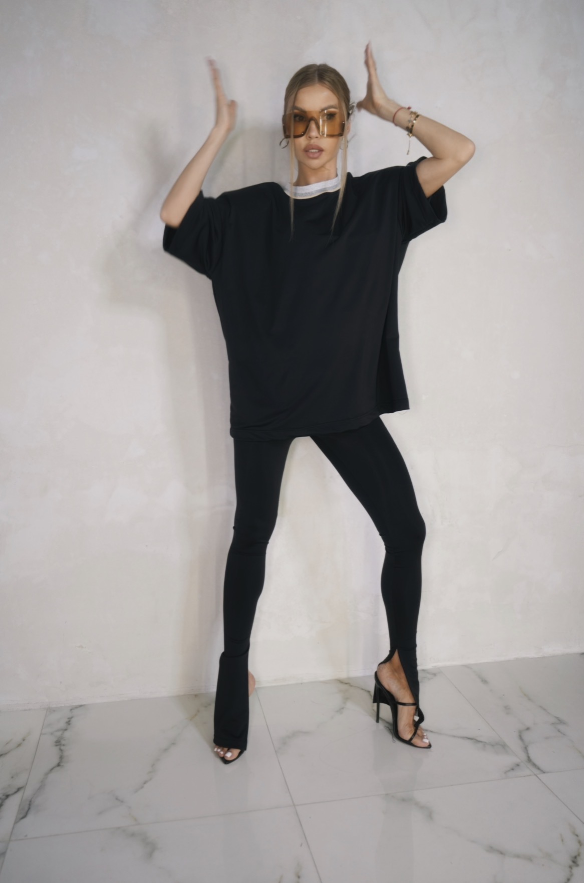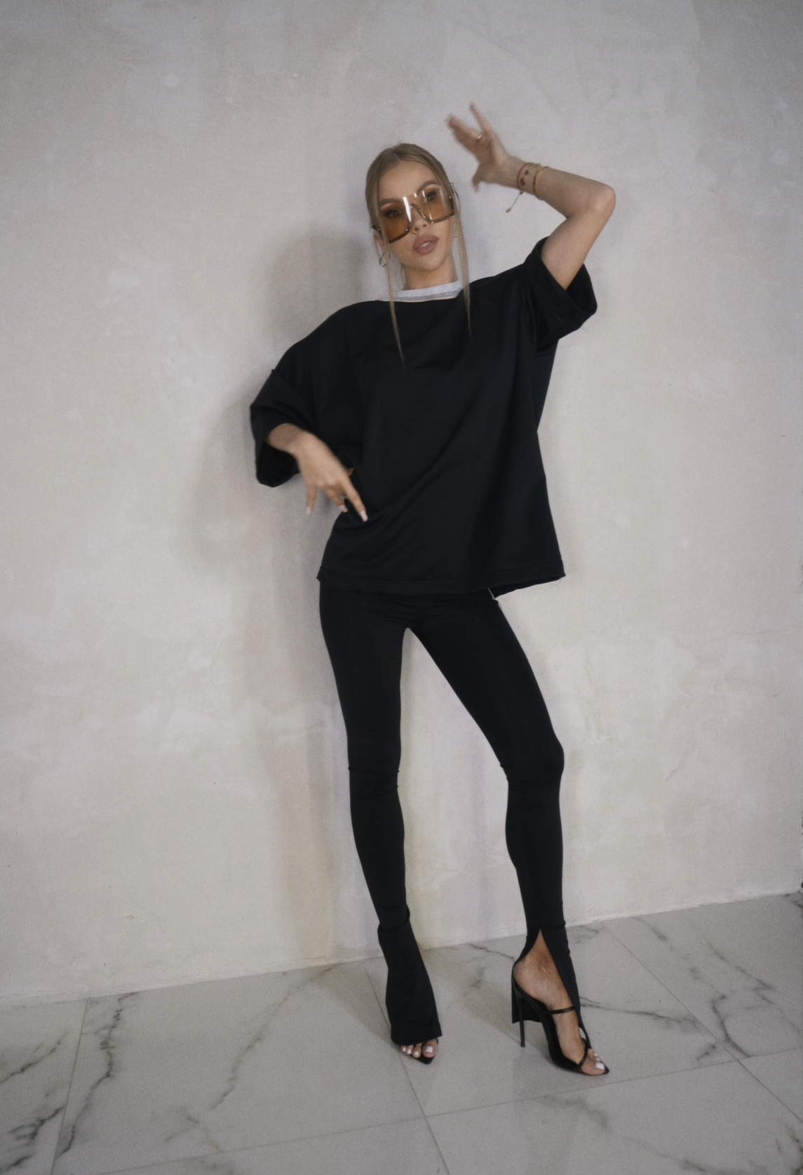 Modelujące legginsy wykonane z super kryjącej, czarnej lycry premium, która perfekcyjnie dopasowuje się do sylwetki i pracuje z każdym ruchem ciała. Materiał jest miękki, elastyczny i oddychający, dając efekt „second skin” oraz pełen komfort noszenia przez cały dzień.