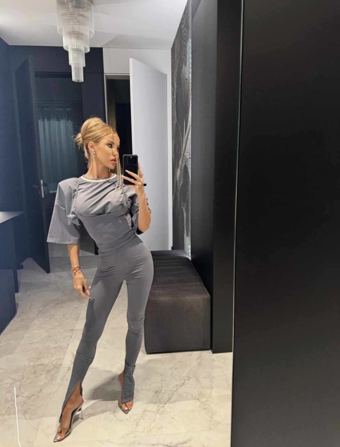 Modelujące legginsy wykonane z super kryjącej, szarej lycry premium, która perfekcyjnie dopasowuje się do sylwetki i pracuje z każdym ruchem ciała. Materiał jest miękki, elastyczny i oddychający, dając efekt „second skin” oraz pełen komfort noszenia przez cały dzień.