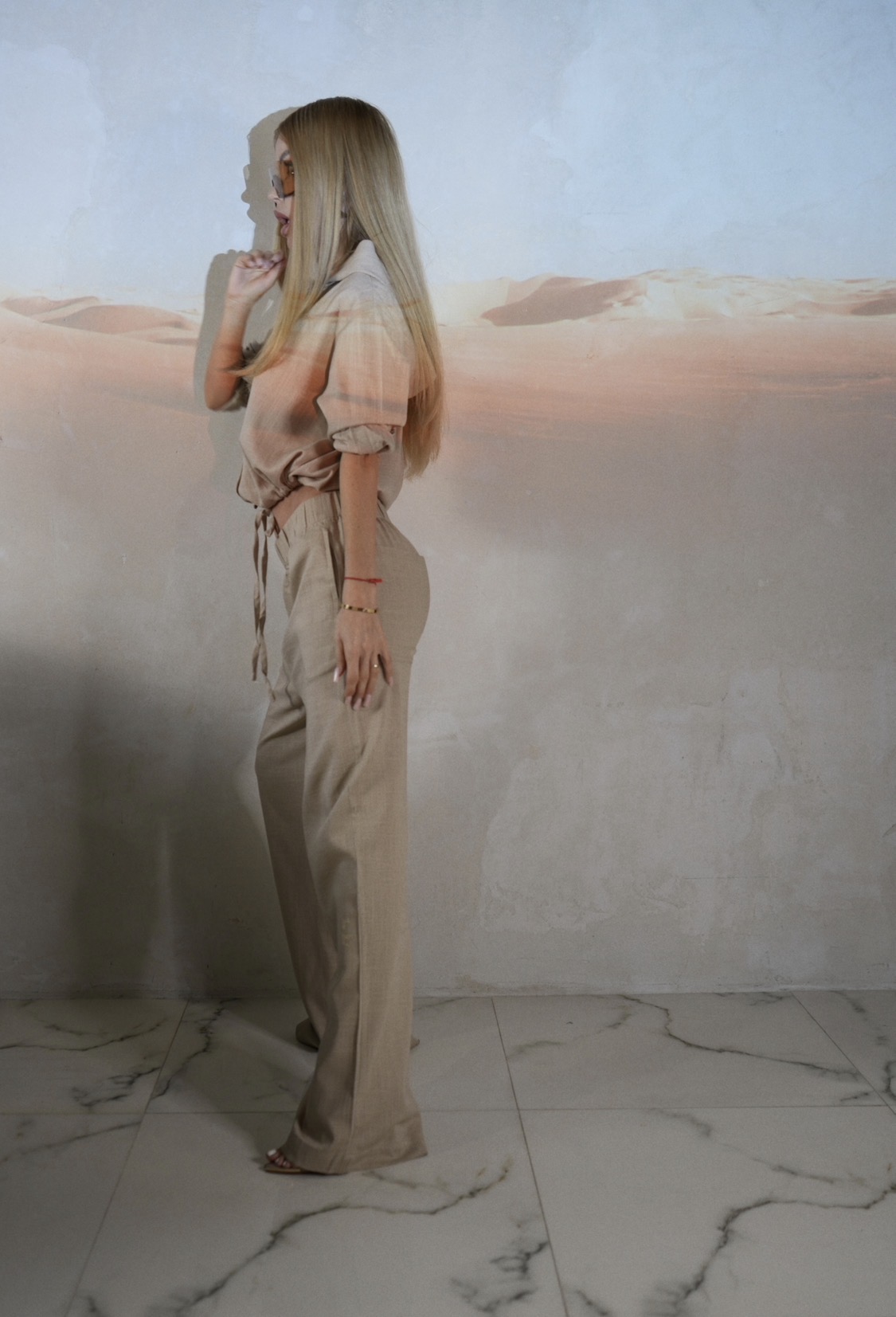 Kobiecy komplet z linii Sahara Signature w odcieniu piaskowego beżu — subtelny, lekki i niezwykle stylowy.