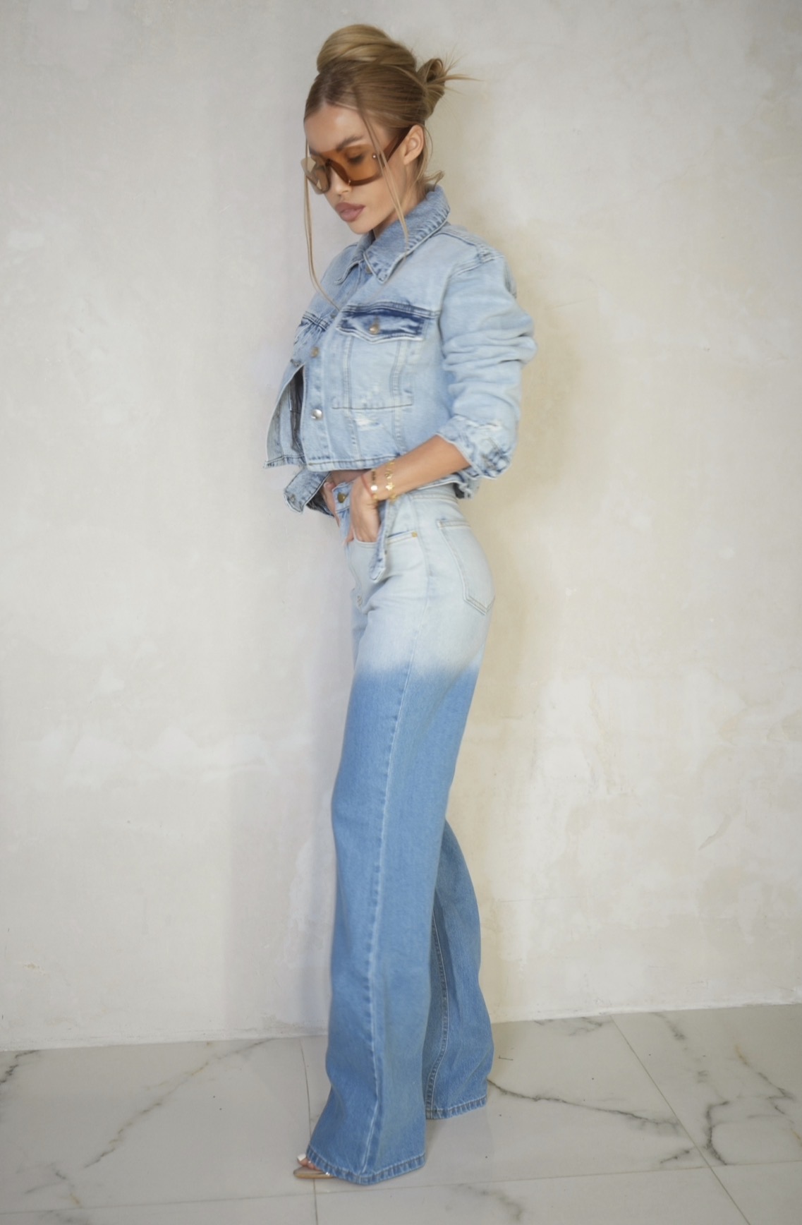 Sky Blue Jeans to idealne połączenie minimalistycznej elegancji i nowoczesnego designu. Wykonane z wysokiej jakości denimu w subtelnym odcieniu błękitu z delikatnym efektem farbowania u góry, tworzą niezwykle świeży i lekki look.