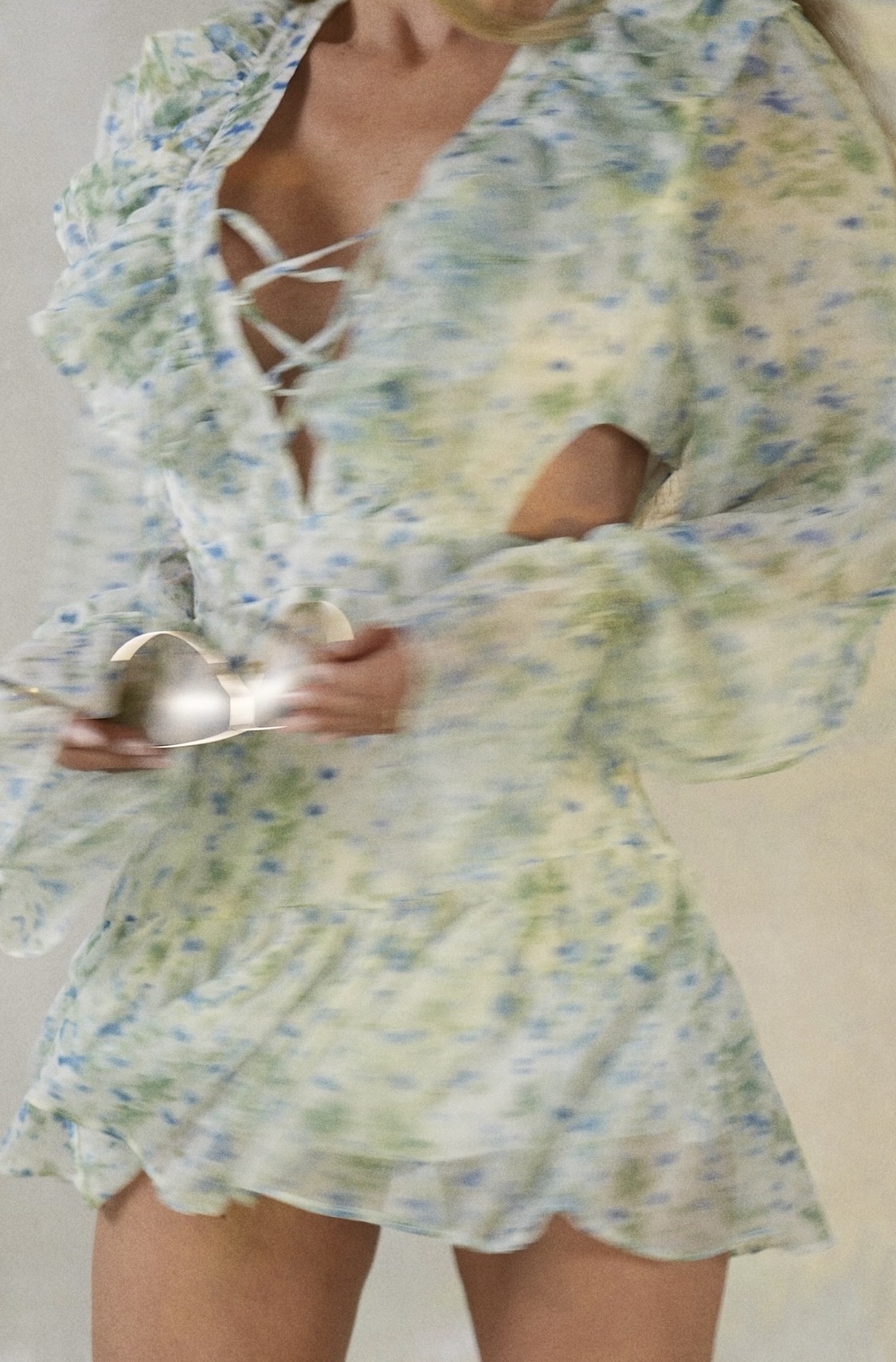 Sukienka Boho Floral Breeze Mini to model wykonany z delikatnego, zwiewnego szyfonu, który pięknie pracuje przy każdym ruchu i nadaje stylizacji lekkości.